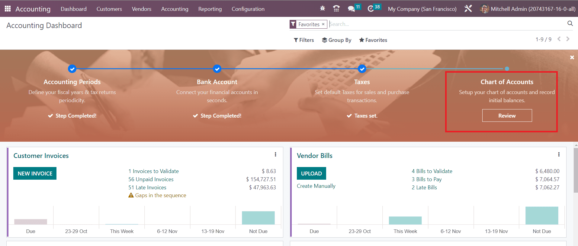 Click the Review button to set up your chart of accounts and record the initial balances.