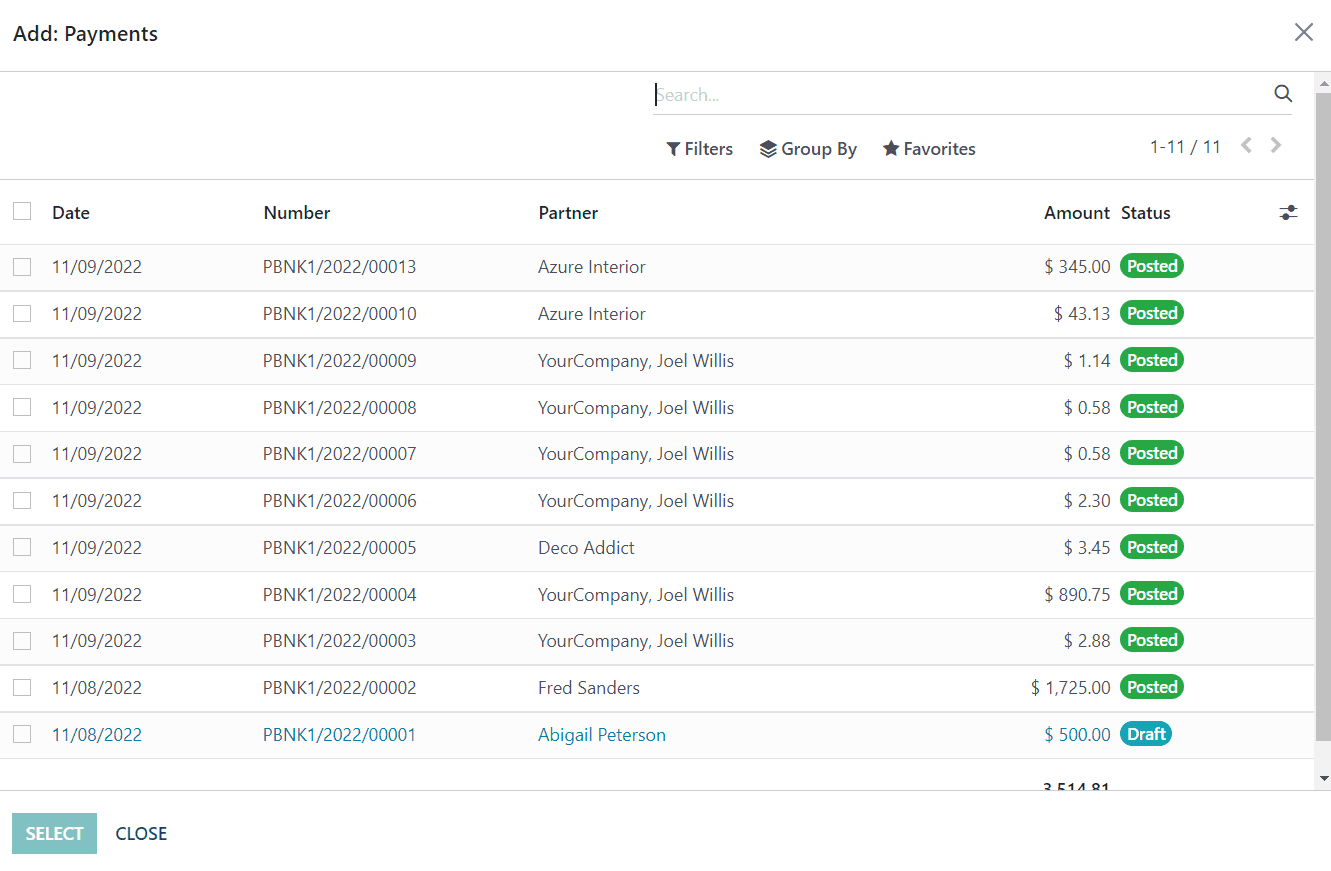 In the case of Inbound batch payment, this list will show customer payments. You will get the list of vendor payments in the pop-up window in the case of Outbound batch payment.