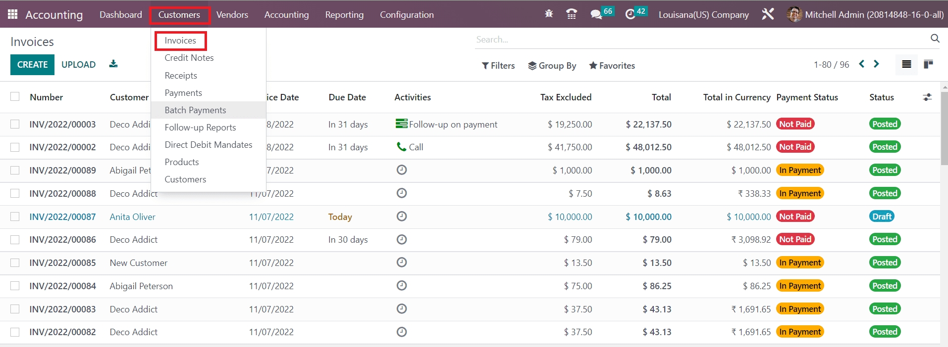 This is how Odoo manages Customer Invoices in the Accounting module. Next, let’s move to the Credit Note platform available in the module.