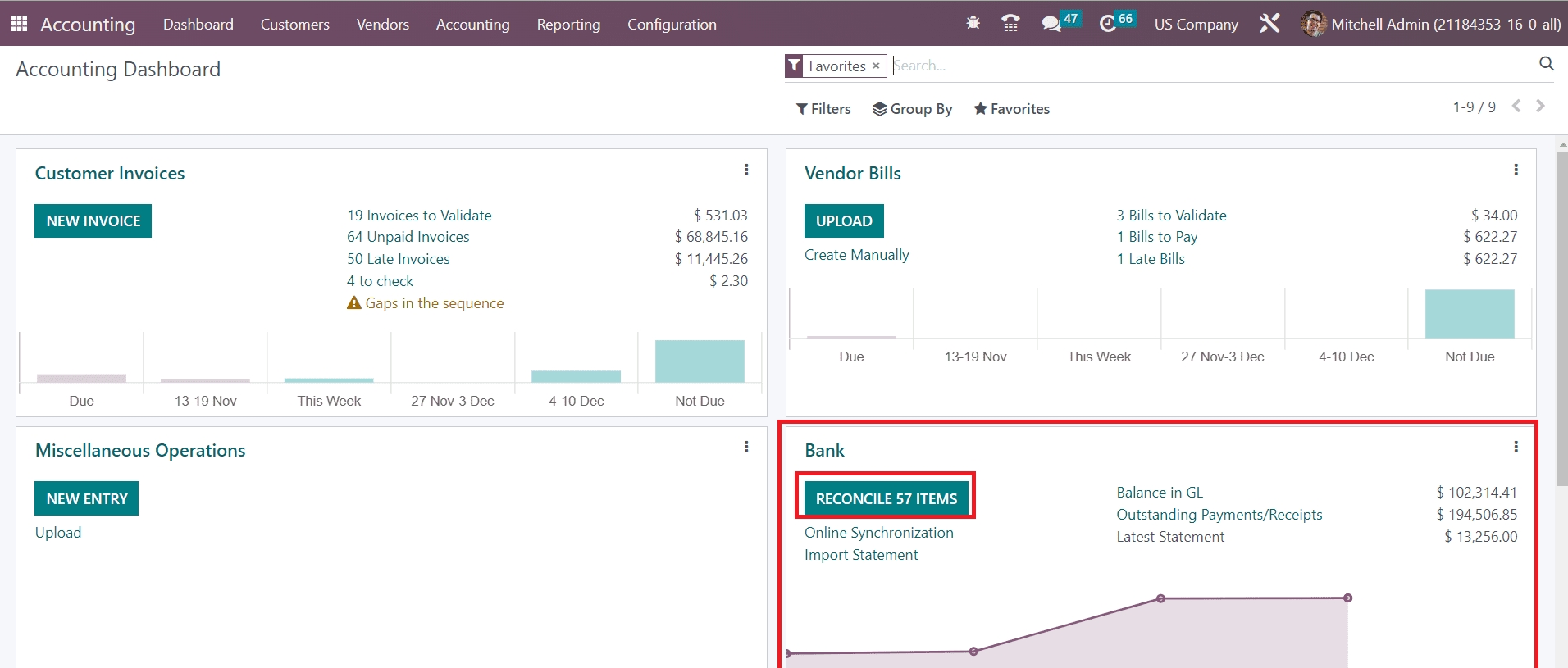 You can easily perform reconciliation operations from the Accounting Dashboard itself.