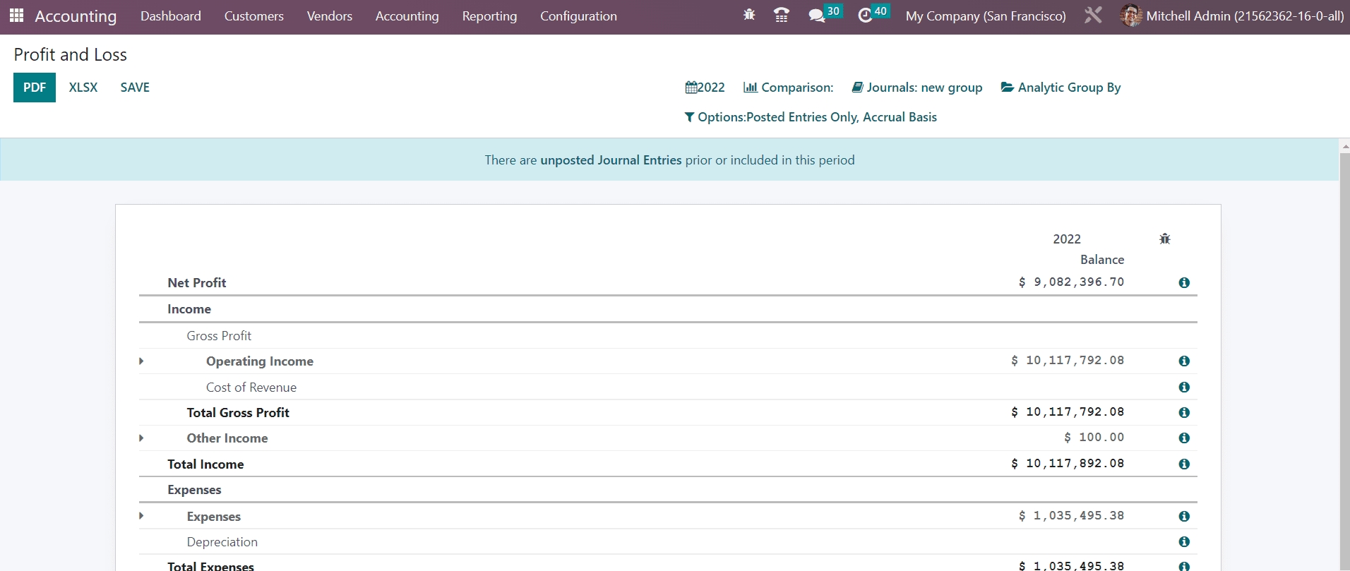 The reports of income statements are the most important part of the financial reporting. In the Profit & Loss reporting platform, you will get the revenue, expenses, profit, and loss of the organization during a particular period of time. The ending balance of the profit & loss report of the selected period of time will not be carried forward to the next accounting period unlike the balance sheet.