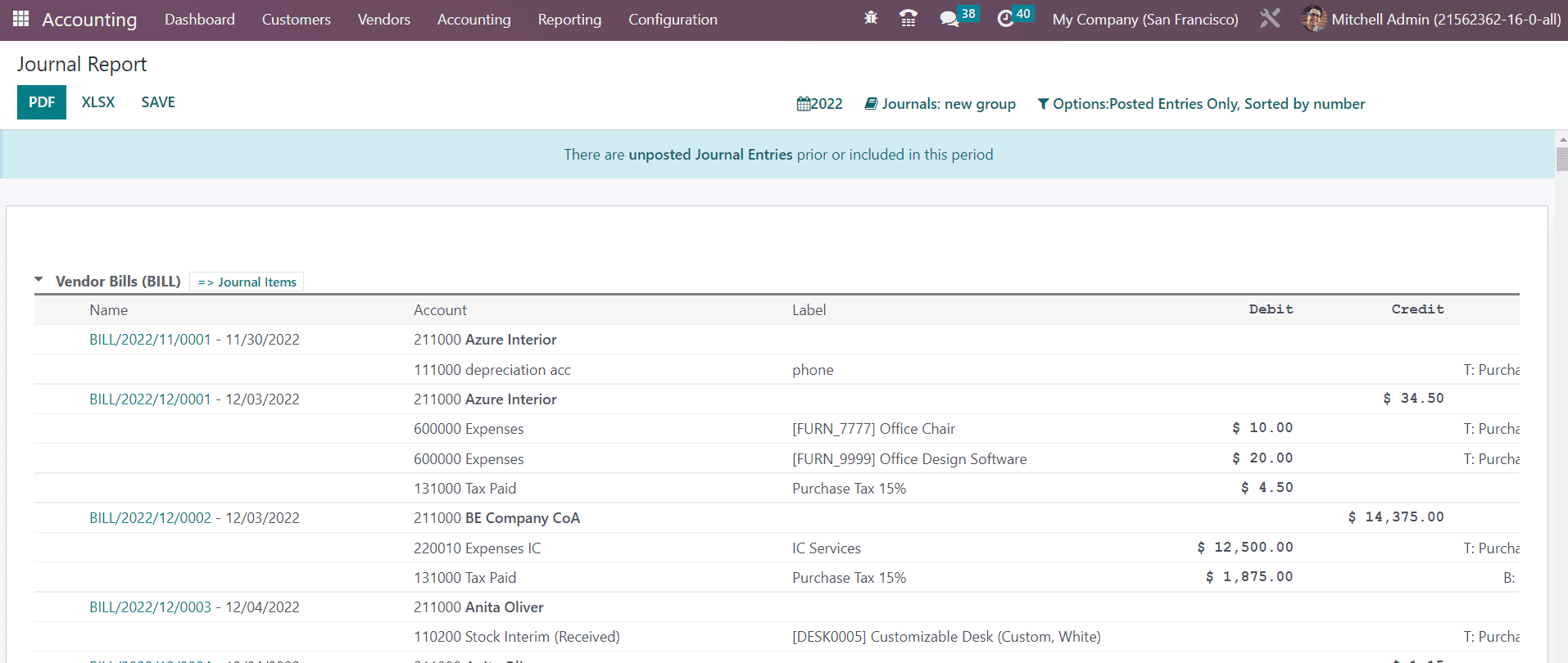 Accounting reports of various journals configured in your Accounting module can be generated from the Journal Reports platform. Under each Journal, you will get the report of corresponding journal items also with the details of the Name, Account, Label, Debit, and Credit.