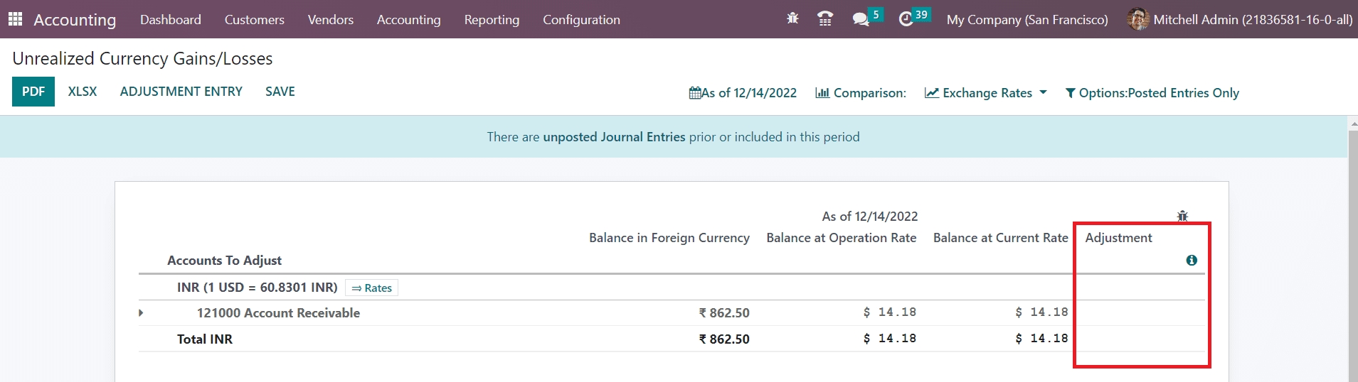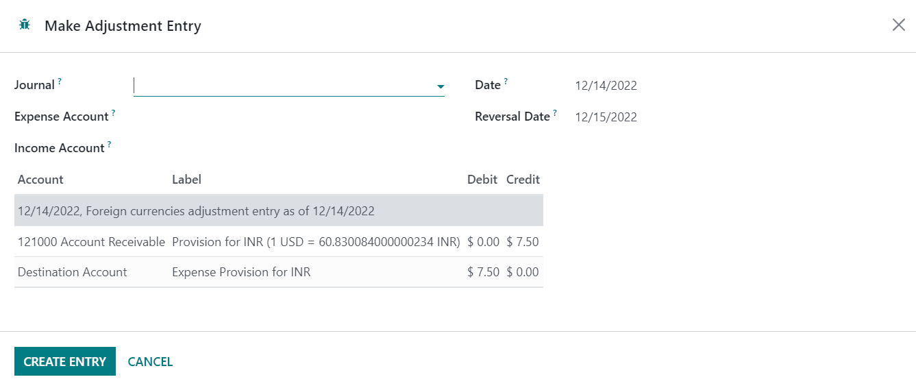 Here, you can select the suitable Journal to record this new accounting entry. Then, select Expense Account, Income Account, and set a Date on which you want this accounting entry to be reported in the respective fields. After adding the necessary details, you can confirm the adjustments by clicking on the Create Entry button. By doing so, the adjustment will be done automatically and corresponding accounting entries will be posted in the mentioned journal as shown below.