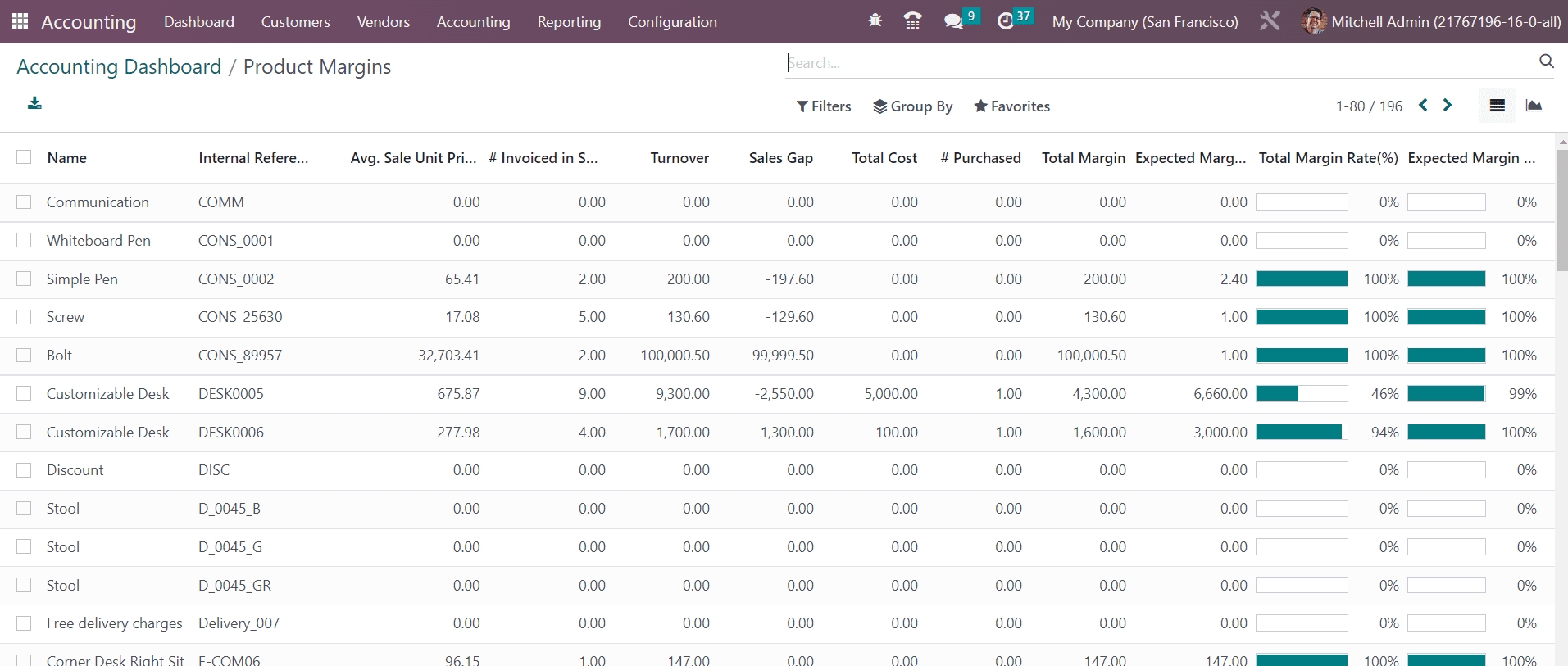 The product margins report is beneficial to understand the product sales progress. It helps to improve the financial analysis of your company by tracking the performance reports over a period of time.