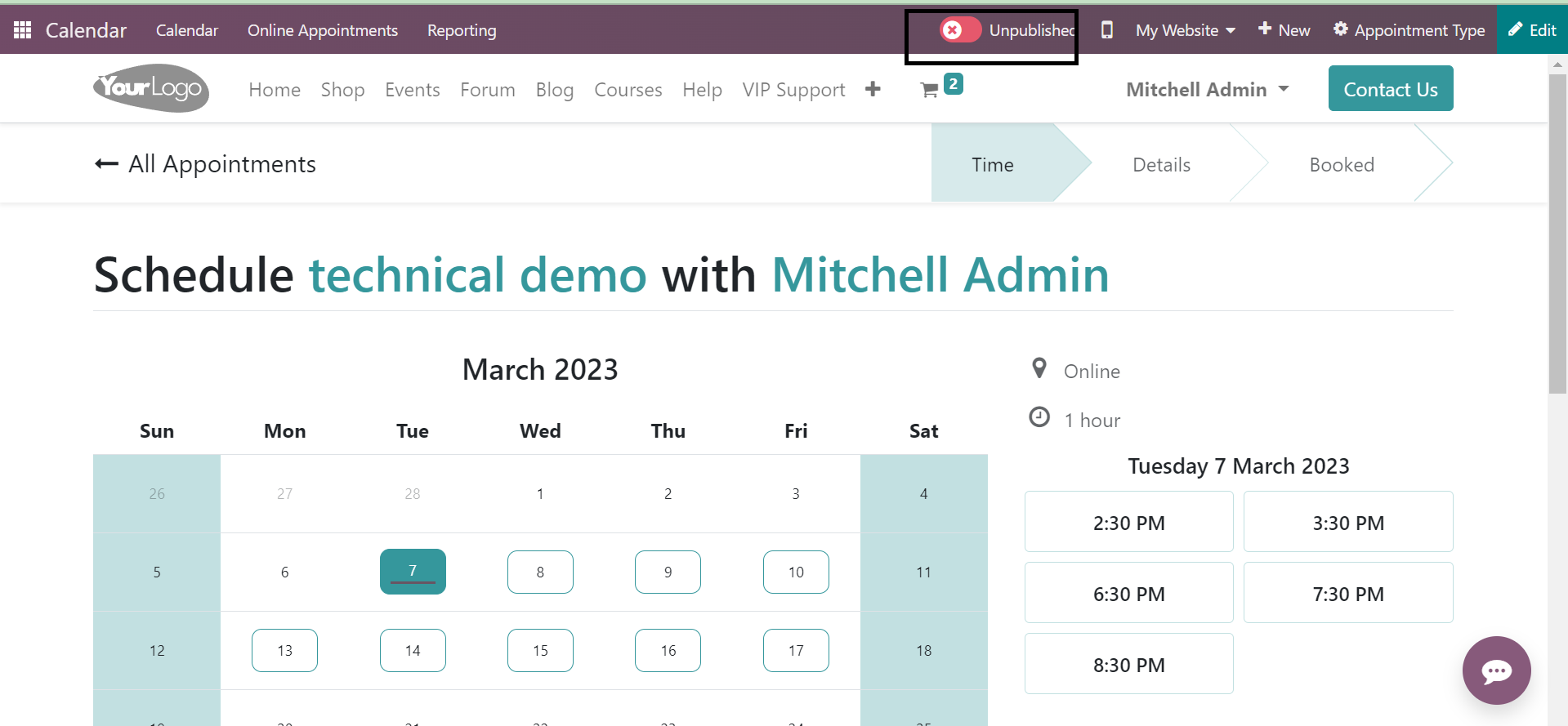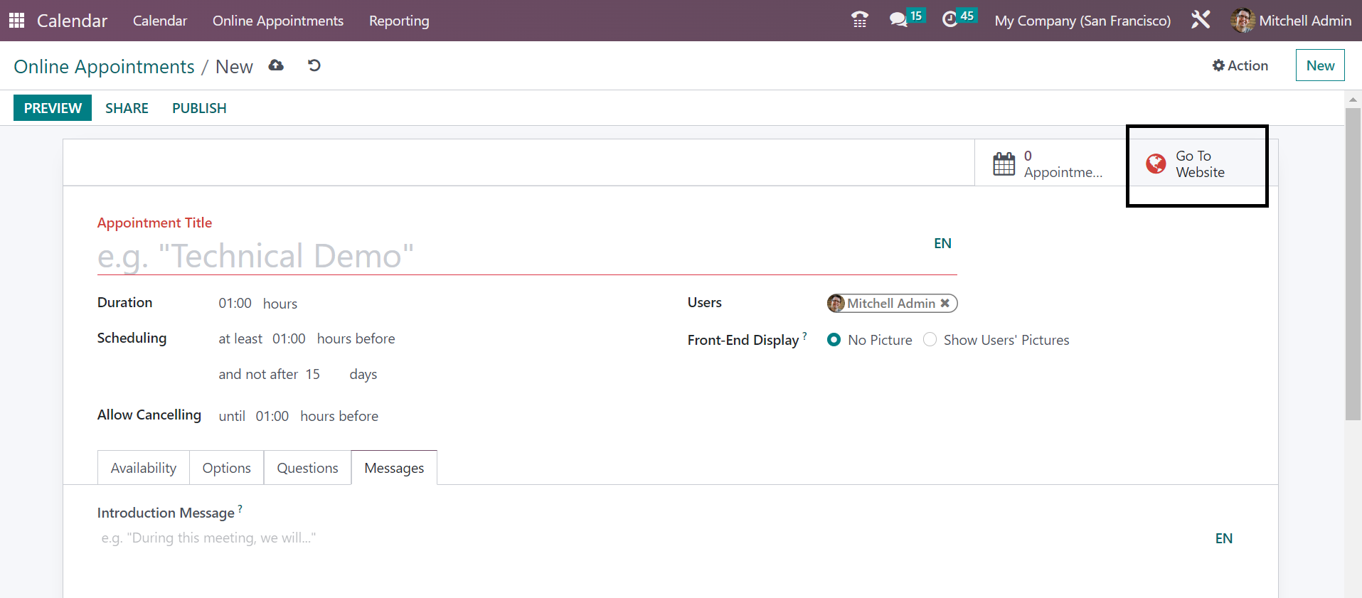 If you want this appointment to get published on the website, just go for the Go To Website option, as shown in the image below.
