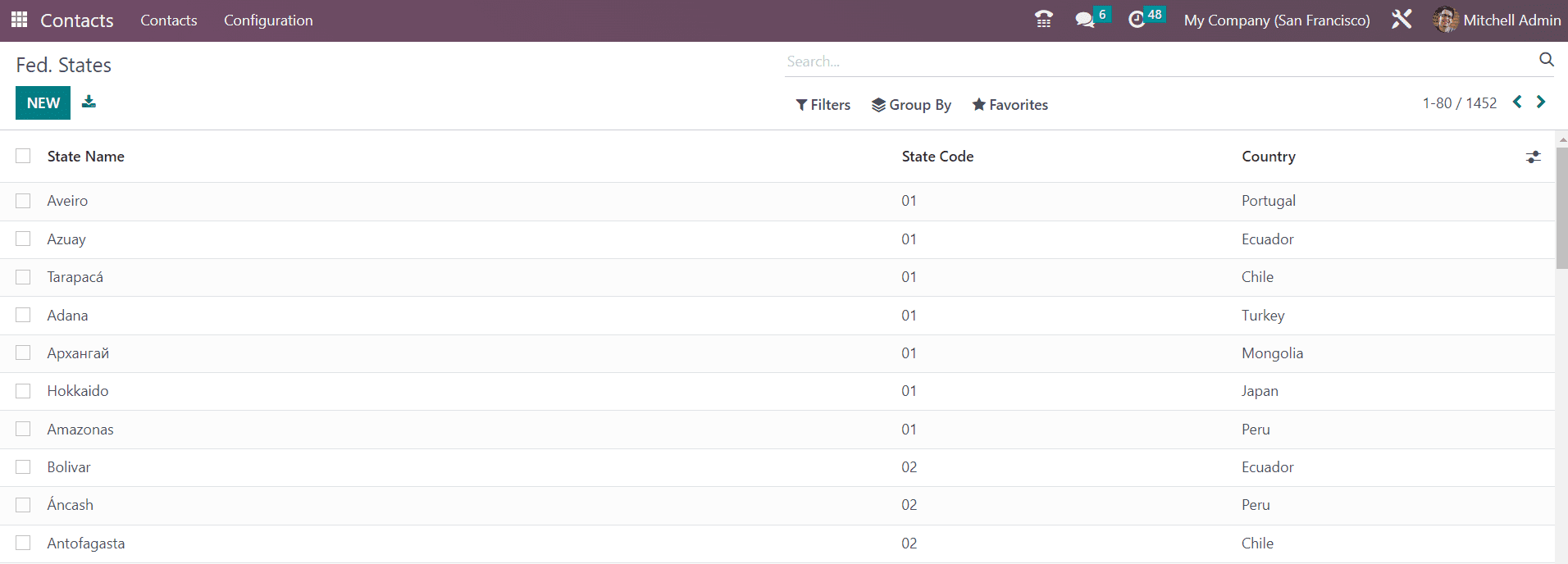Under the Localization tab of the Configuration menu, you will get the options to observe the configured Countries, Fed. states, and Country Groups.