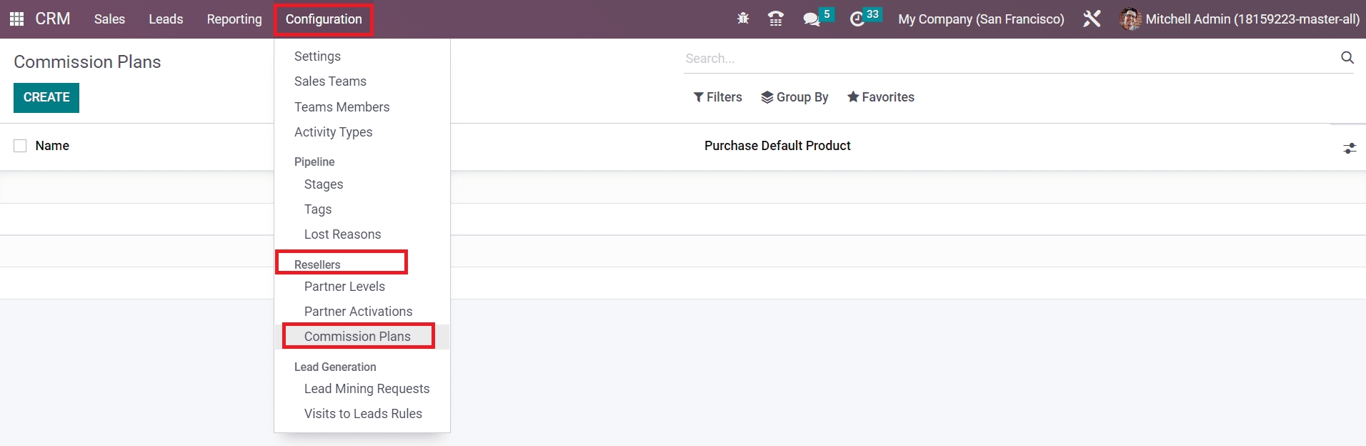 Odoo provides you with opportunities to do business with partners. You can share your leads and opportunities with them to improve the relationship between partners and thereby enhance the business. If you get any sales opportunities from one of your partners, you can pay them a commission once the sales order is confirmed. This marketing strategy will help you to grow your business together with your business partners. With the help of the commission plan feature in the Odoo ERP system, you can pay a particular amount of the total invoiced amount to the partner who referred the sales opportunity to your company.