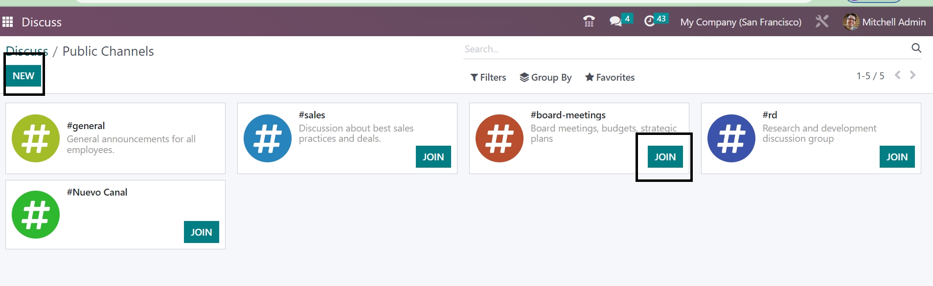 Here, you can make use of the Join icon in order to get added to this existing group that is already created. You can also leave form the groups if required. The New option helps you with the creation of a new channel.