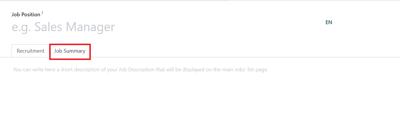 You can use the Job Summary field to add a description related to the job, which will be displayed on the job application.