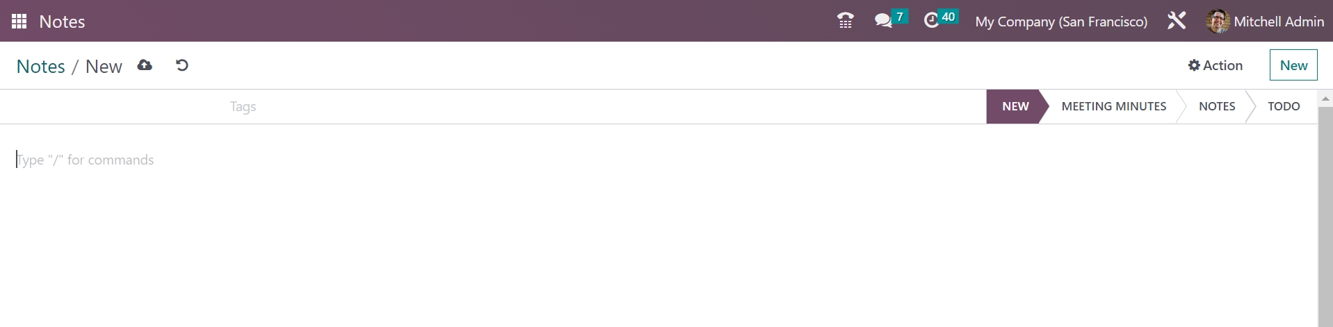 It is necessary to keep the records of information that has to be remembered for later uses. And it has avital role in a company. If we are looking for the conventional methods, we can find the pen and paper methods used for marking those necessary information. When the digitalized era came to get practiced, all the data used to get saved on the systems accordingly. Under the Odoo platform, you can see a space to keep such important notes regarding company operation in a well-structured manner.