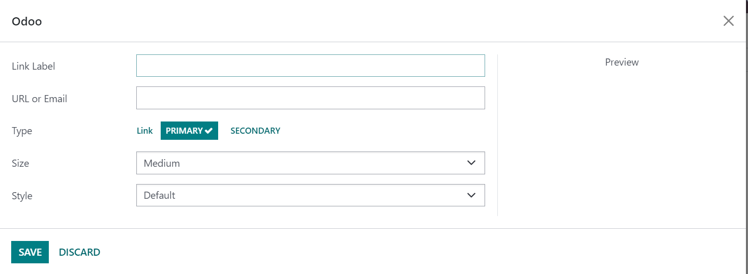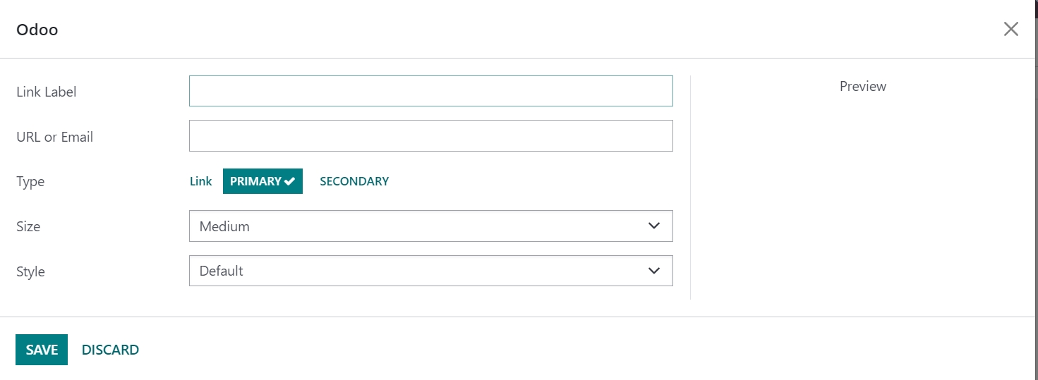 On this page, you can provide the link label and URL or email ID. On the button type, you can assign the link as primary or secondary accordingly. Size and Style can also be determined using the options provided. Finally, go to the Save icon.