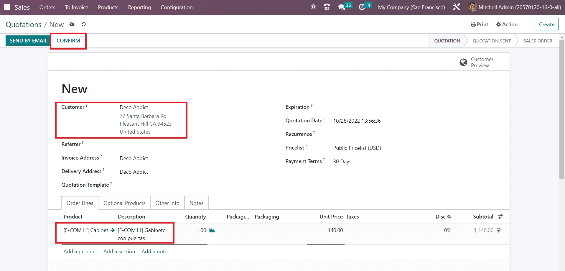 Now, you can create a sales order for this product from the Sales module. The details of the customer can be mentioned in the respective field.