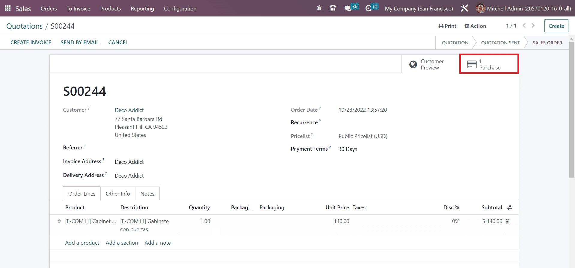 As soon as you confirm the sales order by clicking on the Confirm button, an order to purchase this product from the respective vendor will be automatically generated.