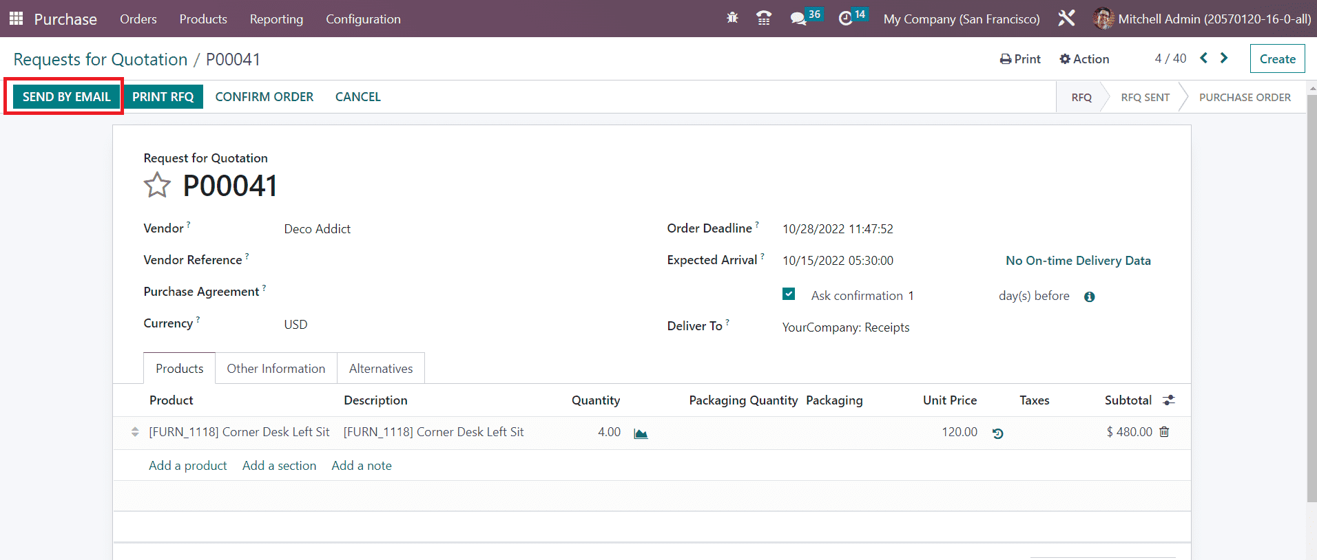 We detailed the creation of RFQ in the Purchase module and now, we are going to take a look at the management of the Purchase Order in Odoo.
