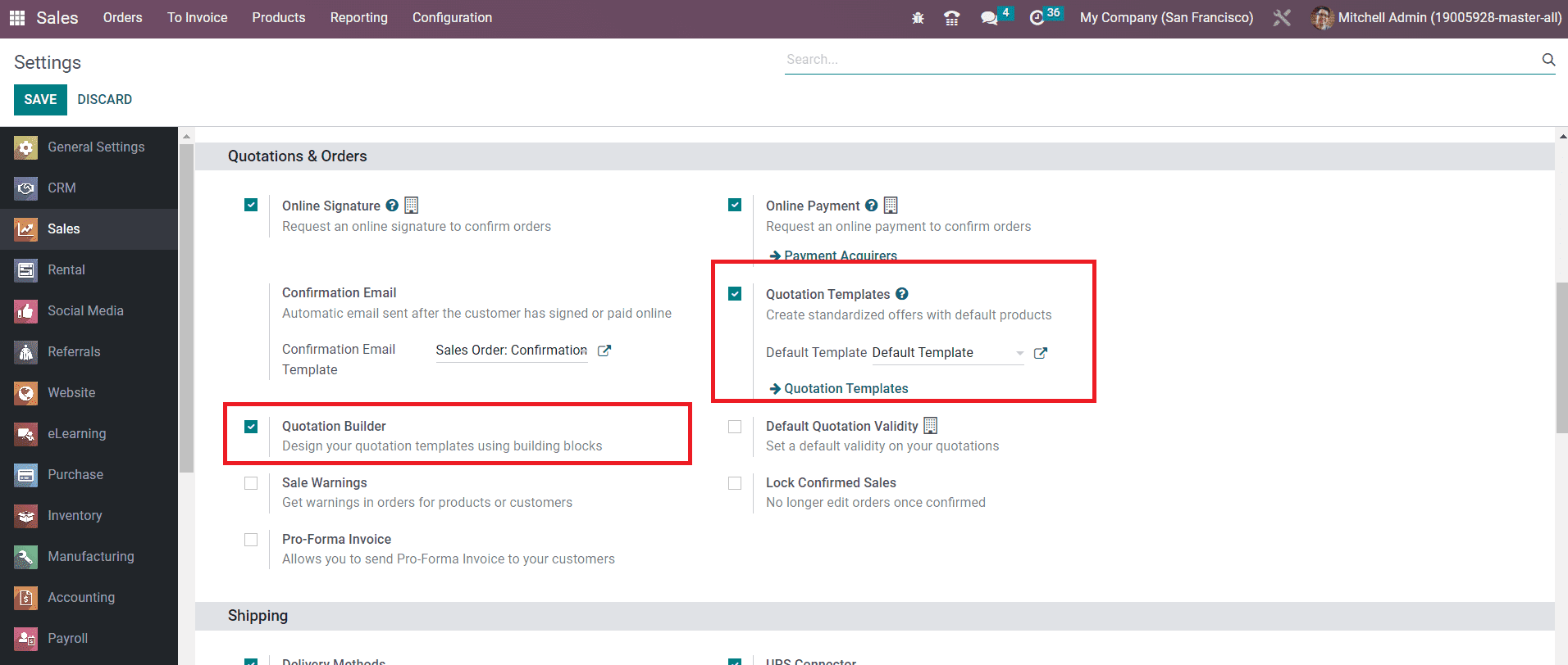 Along with this feature, you are allowed to activate the Quotation Builder also so that you can easily design your quotation templates with the help of the advanced building blocks offered by the Odoo Website.