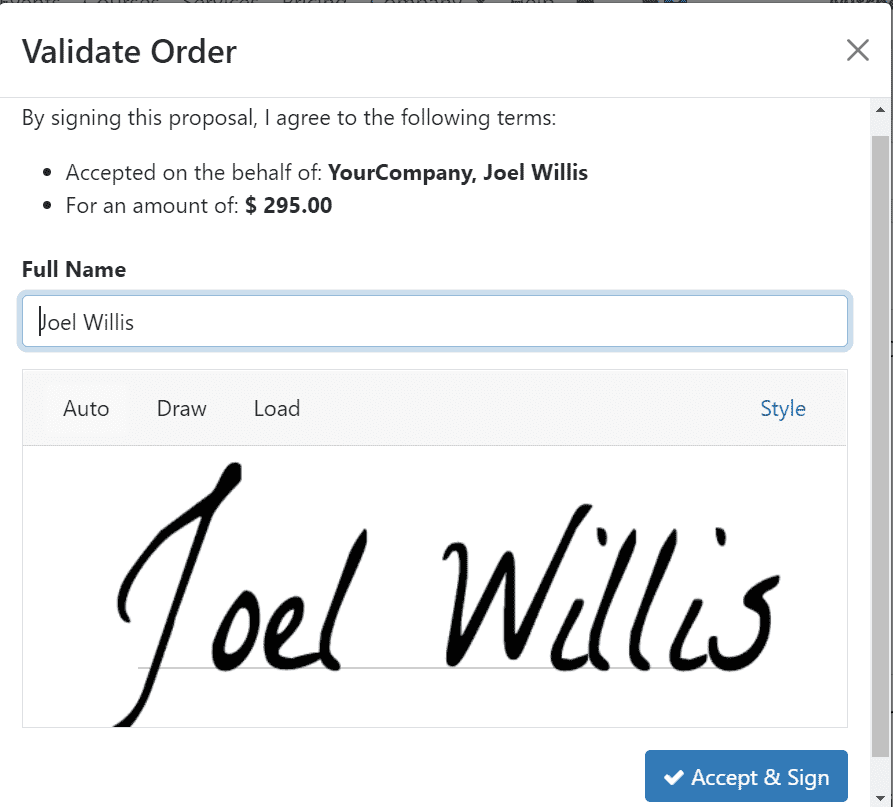 A pop-up window will appear as shown in the screenshot below to accept the quotation and sign.